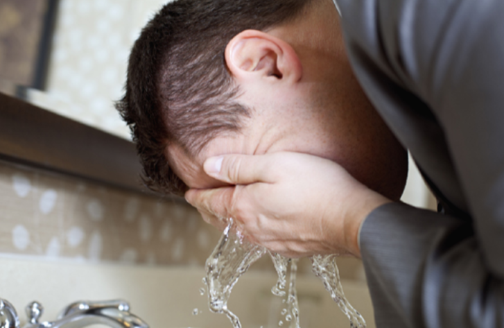 가장 먼저 면도 전에는 따뜻한 물로 세안이 필수입니다.