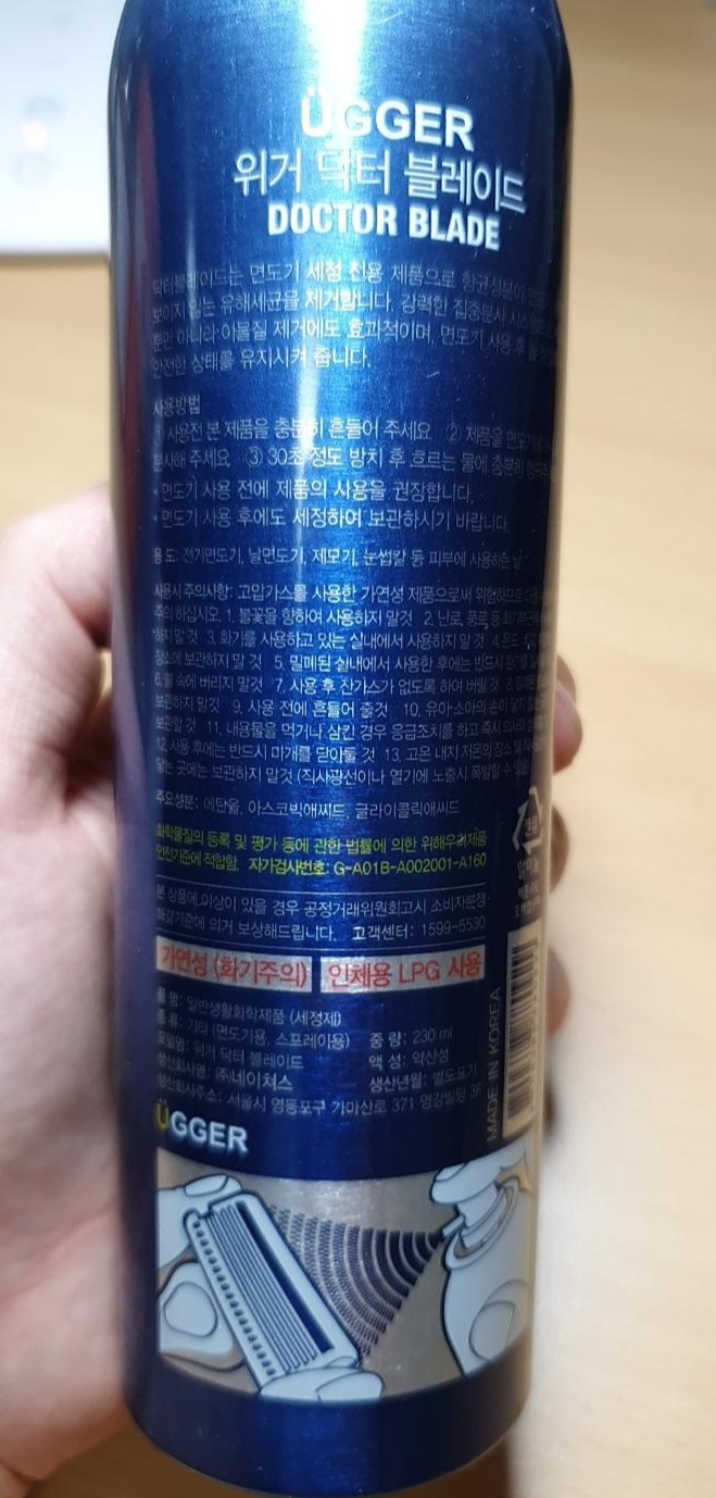 이 제품의 광고에는 면도를 하기 전과 후 모두 소독을 권장한다고 나와있으나, 면도 전에만 소독을 해주고, 후에는 물로만 헹궈줘도 충분한 것 같습니다.