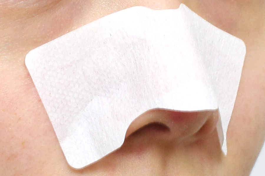 4. 랩을 뗀 후 면봉으로 바세린에 녹은 코의 피지들을 닦아내 준다.
