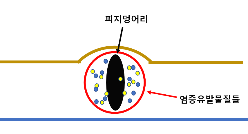두번째로 피지 덩어리는 여드름의 근본원인이 됩니다.