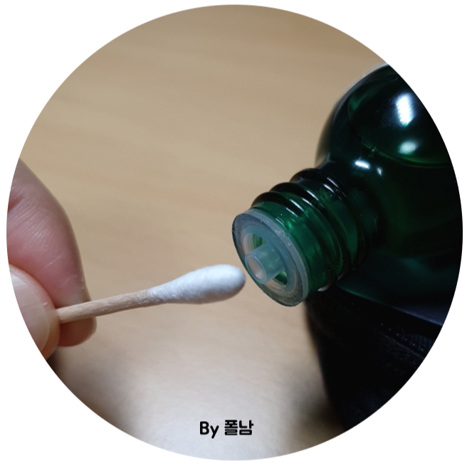 병을 살짝 기울면 한방울씩 나오니 입구에 면봉을 놓고 묻히시면 됩니다 ㅎㅎ