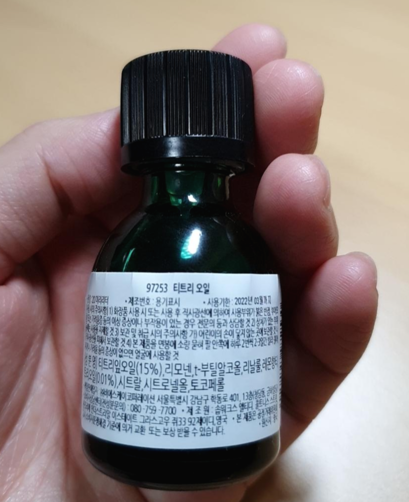 많은 티트리오일 제품 중 저는 더바디샵 제품을 구매했습니다.